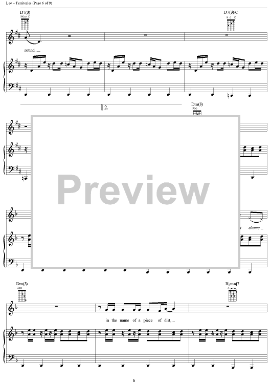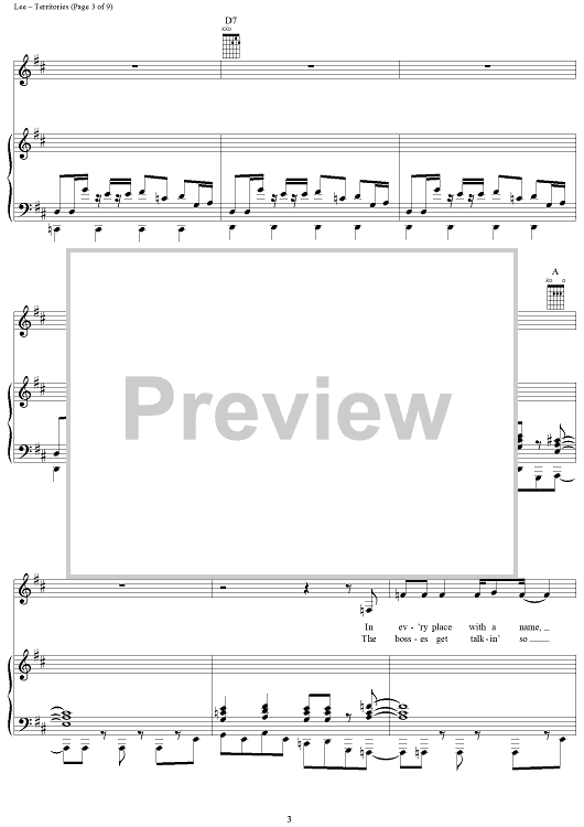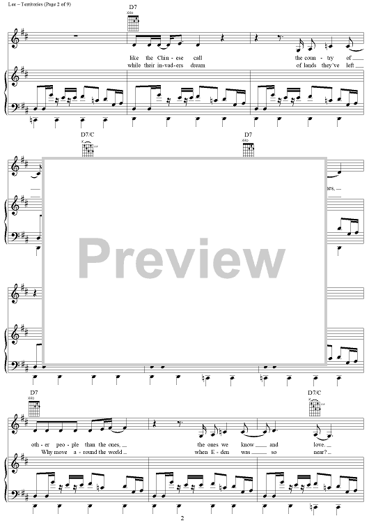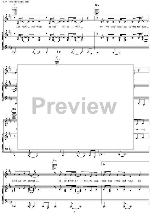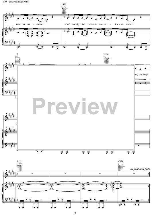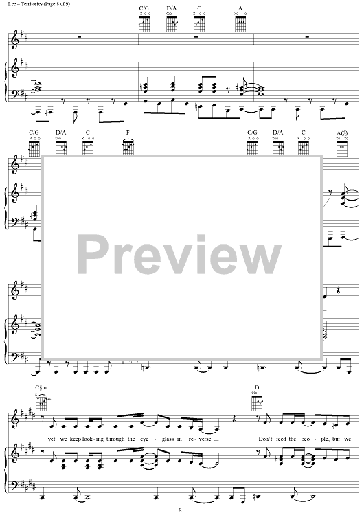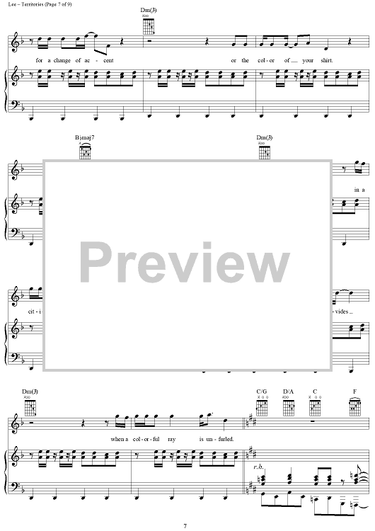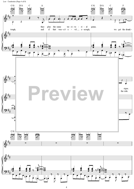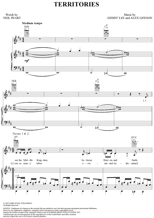 Digital Sheet Music for Territories by Rush, Geddy Lee, Alex Lifeson, Neil Peart scored for Piano/Vocal/Chords; id:250787