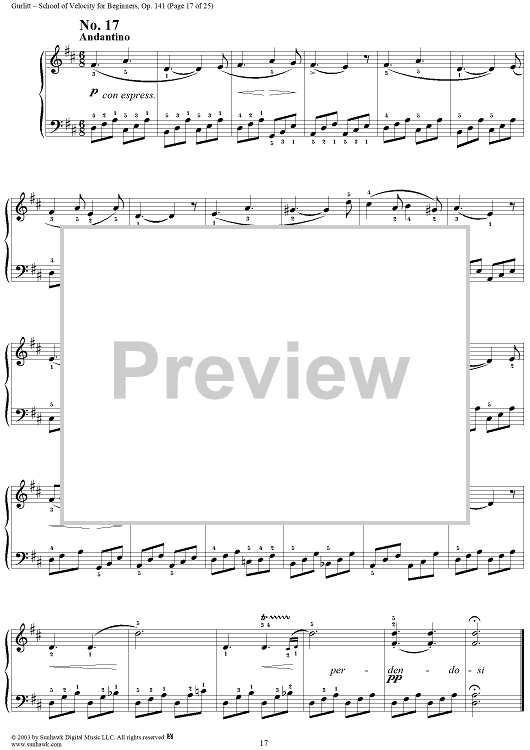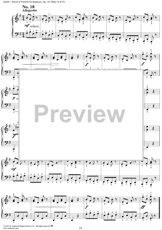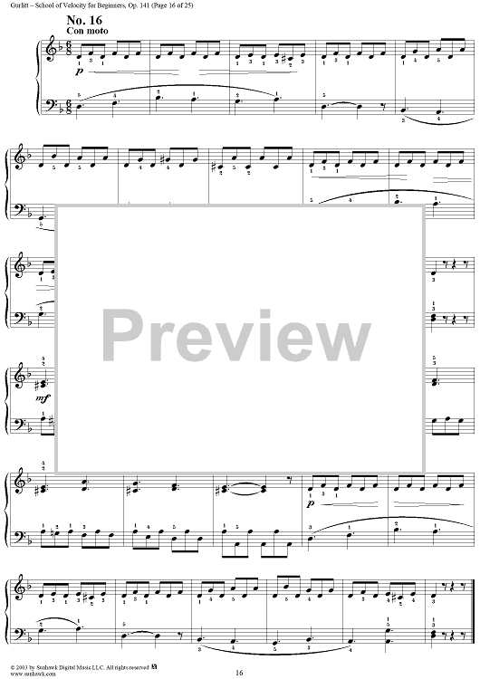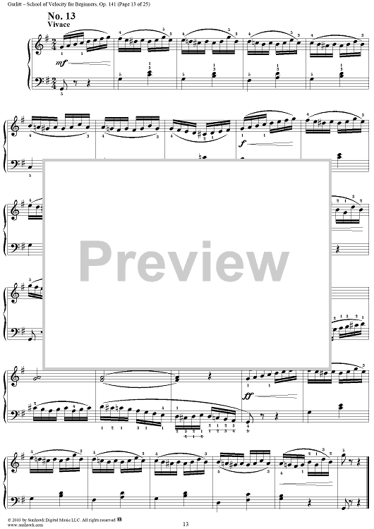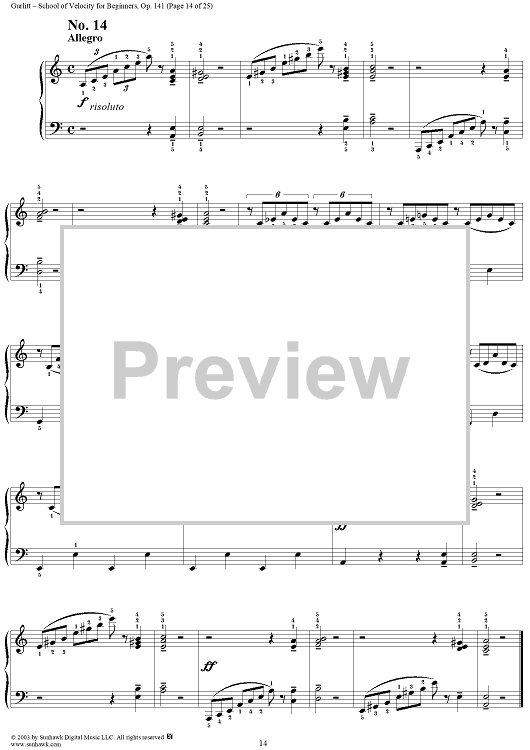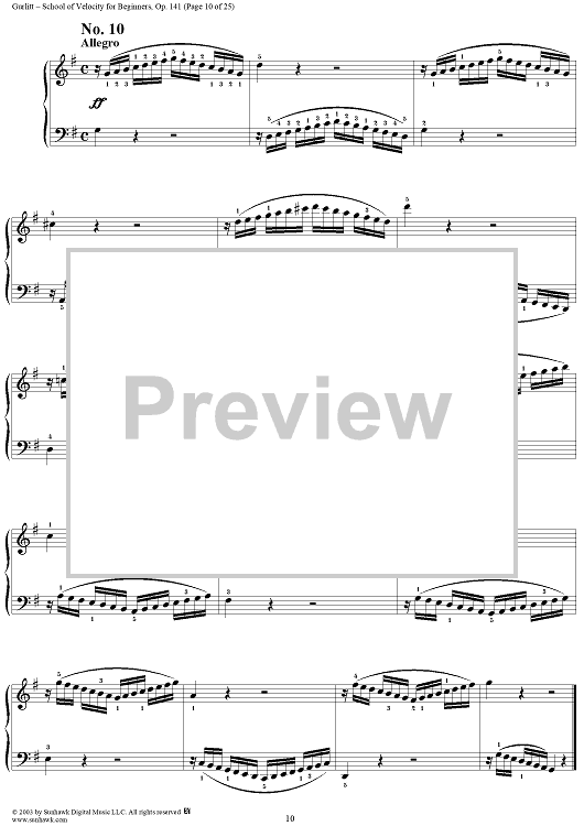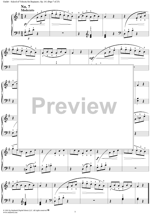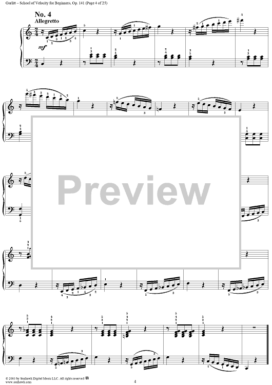 Digital Sheet Music for School of Velocity for Beginners, Op. 141 by Cornelius Gurlitt scored for Piano Solo; id:294689