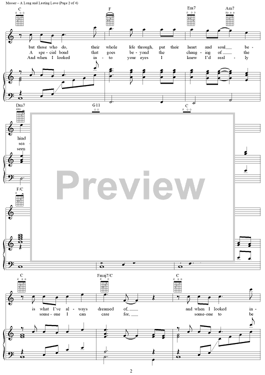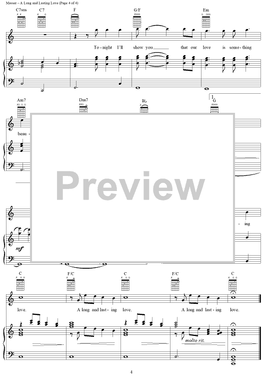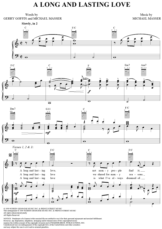 Digital Sheet Music for A Long and Lasting Love by Michael Masser, Crystal Gayle, Gerry Goffin scored for Piano/Vocal/Chords; id:120375