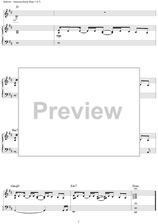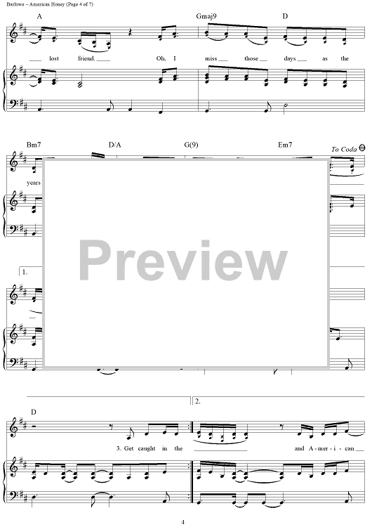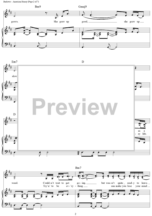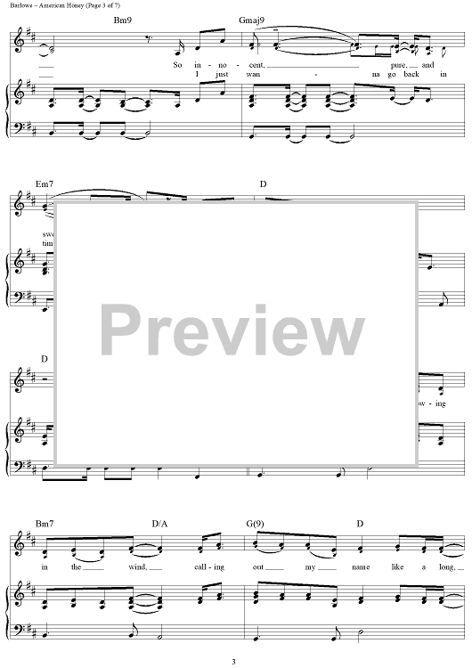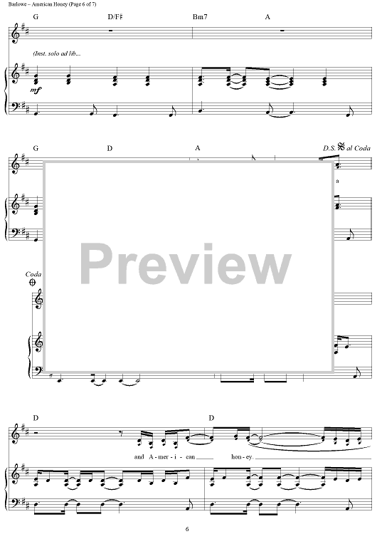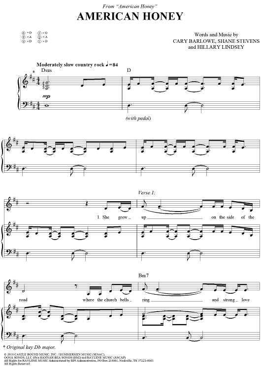Digital Sheet Music for American Honey by Cary Barlowe, Lady Antebellum scored for Piano/Vocal/Chords; id:410187