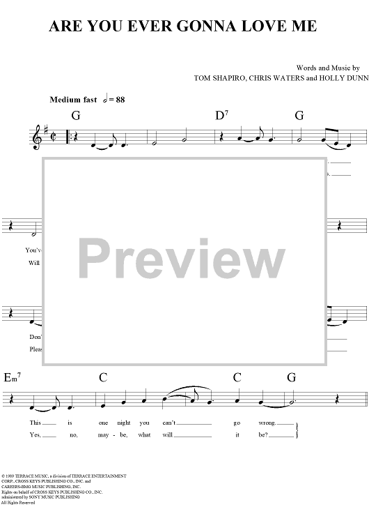 Digital Sheet Music for Are You Ever Gonna Love Me by Holly Dunn, Chris Water, Tom Shapiro scored for Lead Sheet; id:257519
