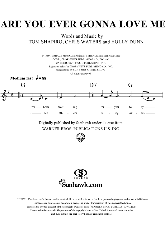 "Are You Ever Gonna Love Me" Sheet Music by Holly Dunn