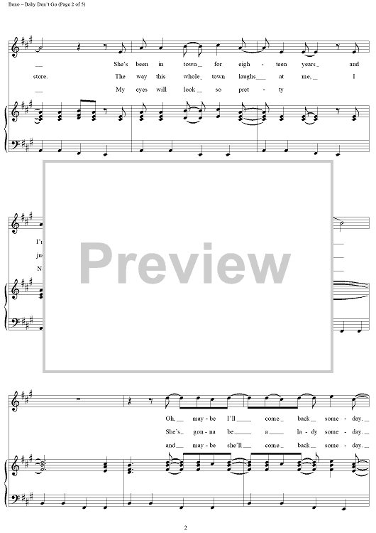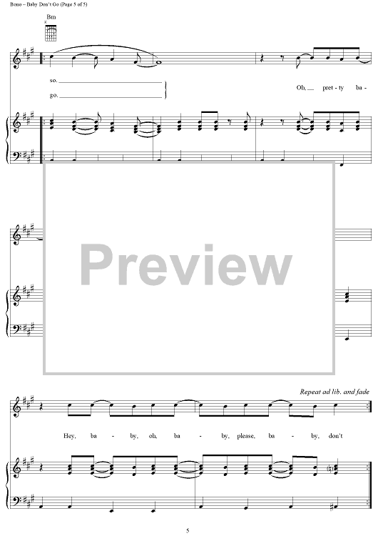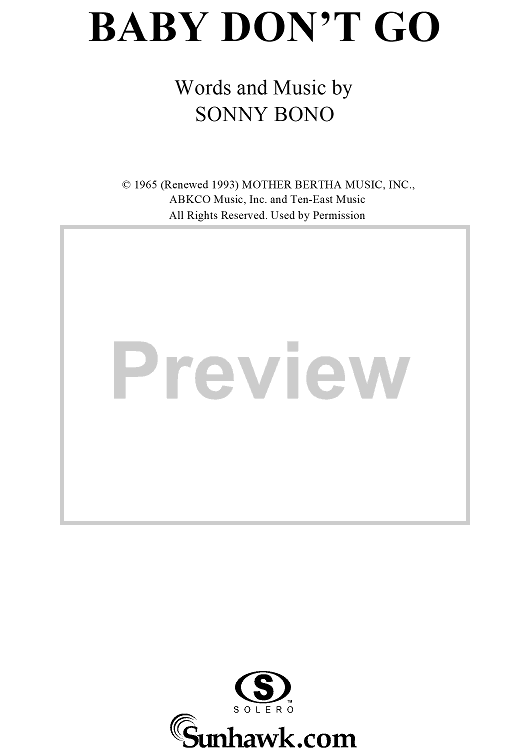 Digital Sheet Music for Baby Don't Go by Sonny Bono, Dwight Yoakam scored for Piano/Vocal/Chords; id:275349
