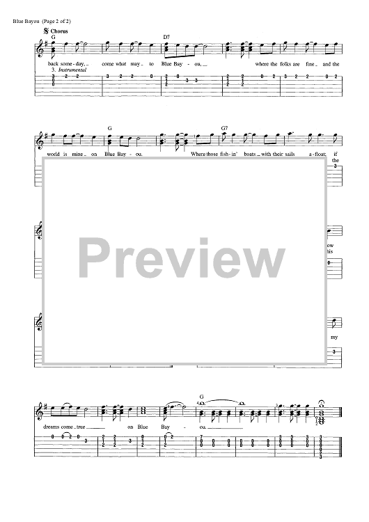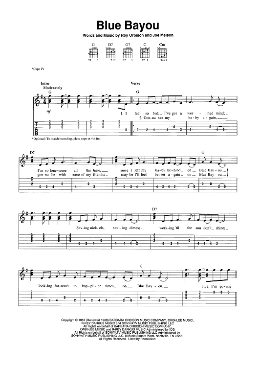 Digital Sheet Music for Blue Bayou by Roy Orbison, Joe Melson scored for Easy Guitar Tab/Vocal/Chords; id:456711