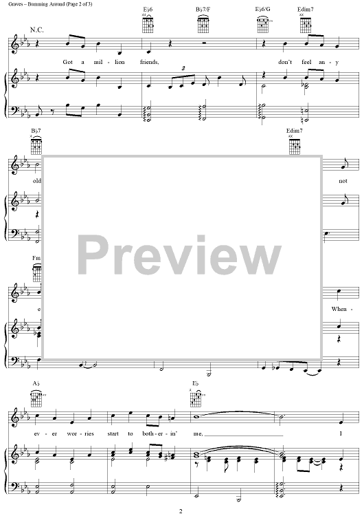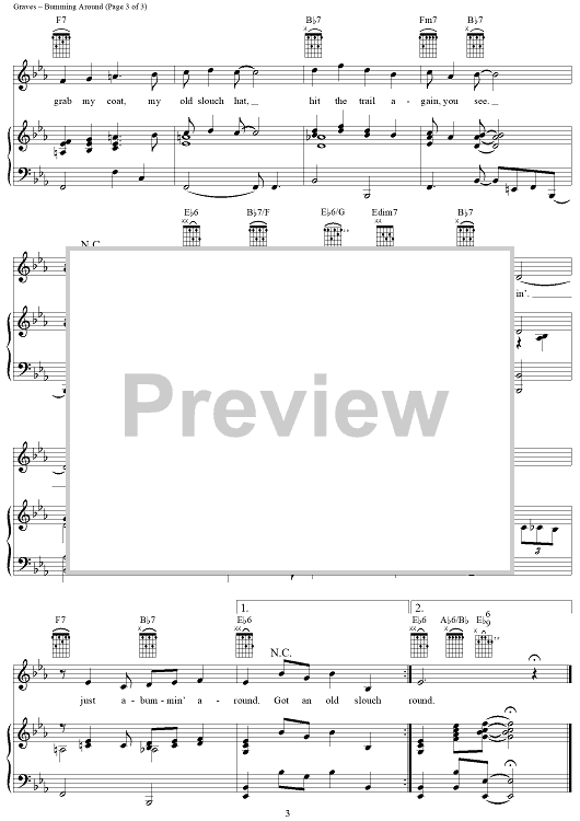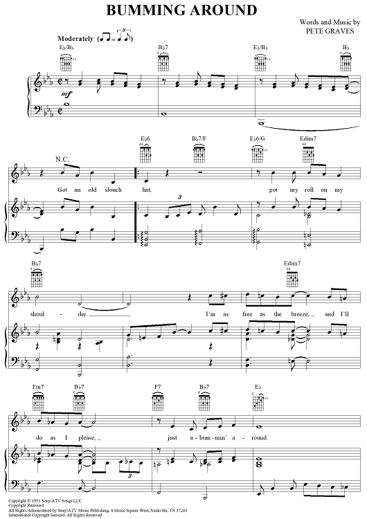 Digital Sheet Music for Bumming Around by Pete Graves, T. Texas Tyler scored for Piano/Vocal/Chords; id:367716