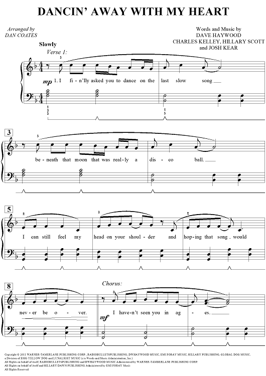 Digital Sheet Music for Dancin' Away With My Heart by Dan Coates, Josh Kear, Hillary Scott, Charles Kelley, Dave Haywood scored for Piano; id:458335
