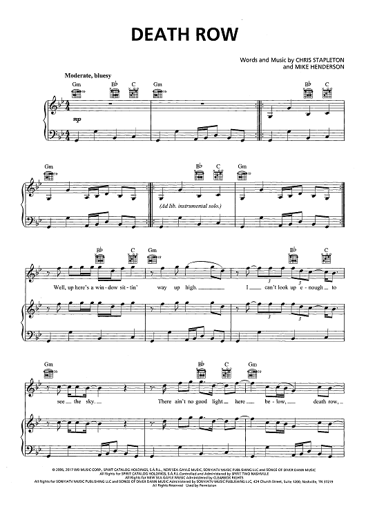 Digital Sheet Music for Death Row by Chris Stapleton, Mike Henderson scored for Piano/Vocal/Chords; id:466084