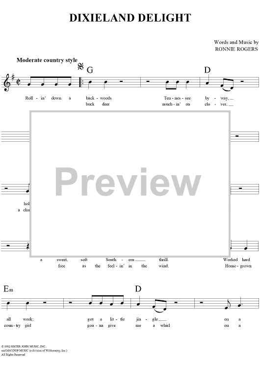 Digital Sheet Music for Dixieland Delight by Ronnie Rogers, Alabama scored for Lead Sheet; id:255466