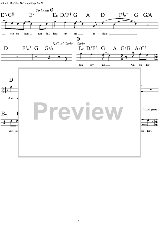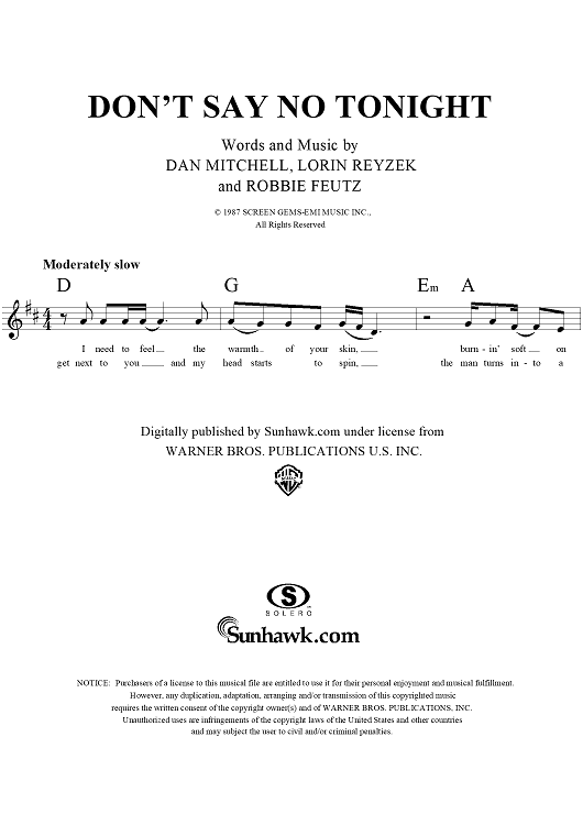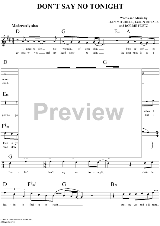 Digital Sheet Music for Don't Say No Tonight by Dan Mitchell, Lorin Reyzek, Robbie Feutz, Mason Dixon scored for Lead Sheet; id:154854