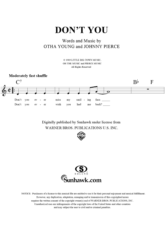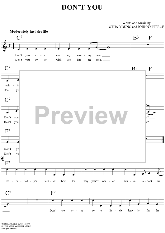 Digital Sheet Music for Don't You by Otha Young, Johnny Pierce, Forester Sisters scored for Lead Sheet; id:119836