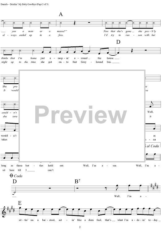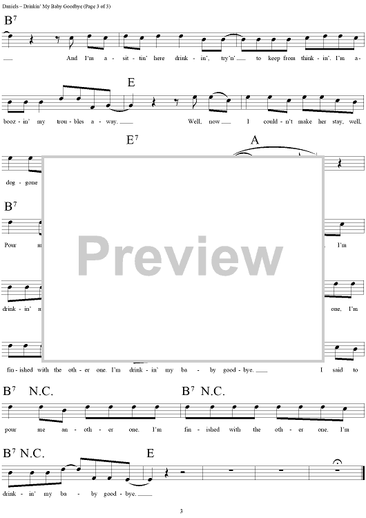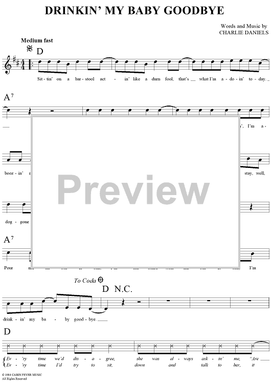 Digital Sheet Music for Drinkin' My Baby Goodbye by Charlie Daniels, Charlie Daniels Band scored for Lead Sheet; id:119831