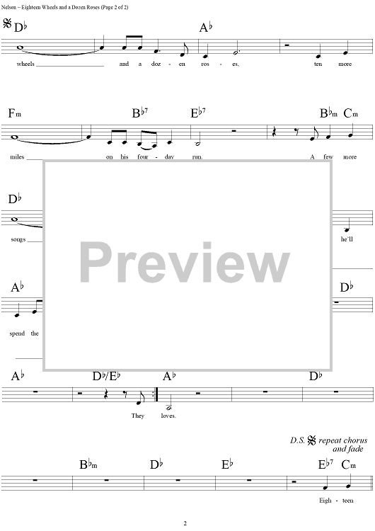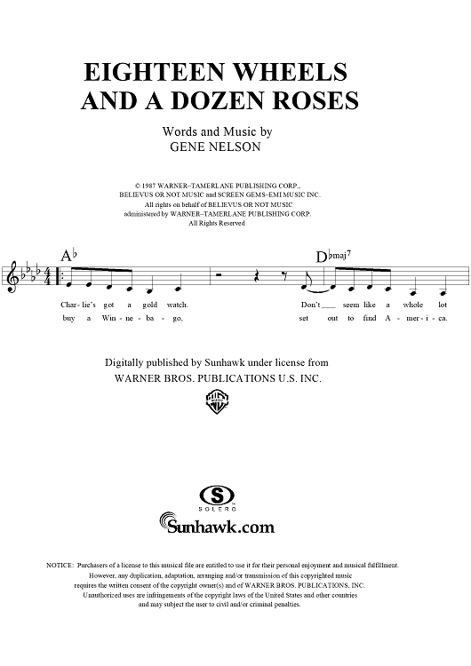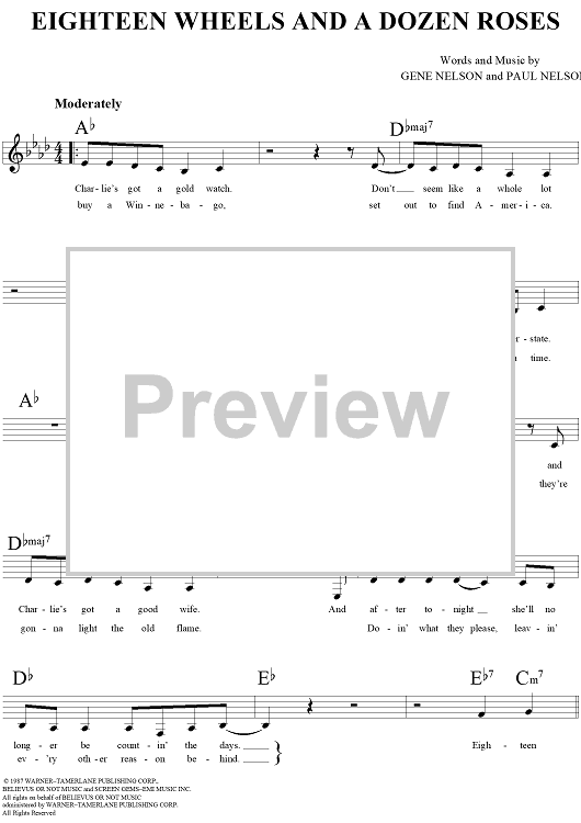 Digital Sheet Music for Eighteen Wheels and a Dozen Roses by Gene Nelson, Paul Nelson, Kathy Mattea scored for Lead Sheet; id:253256