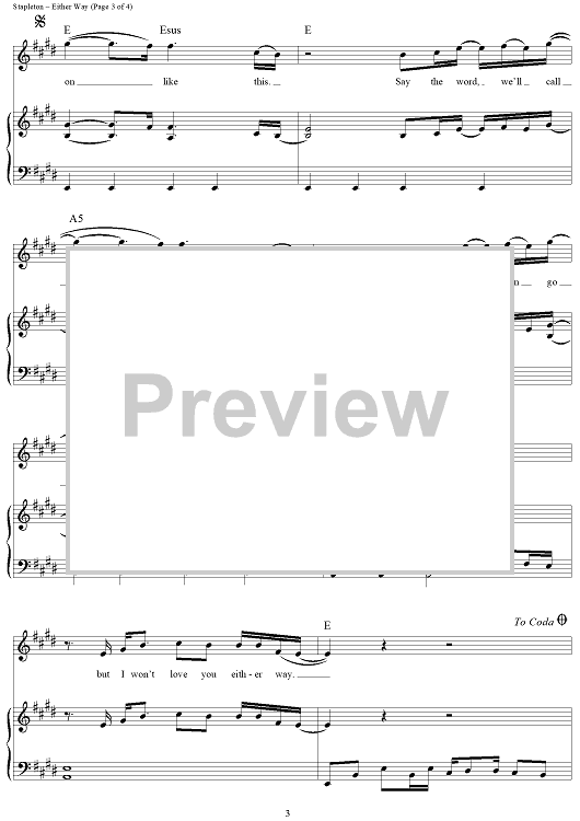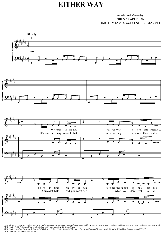 Digital Sheet Music for Either Way by Tim James, Ronnie Bowman, Kendall Marvel, Chris Stapleton scored for Piano/Vocal/Chords; id:465294