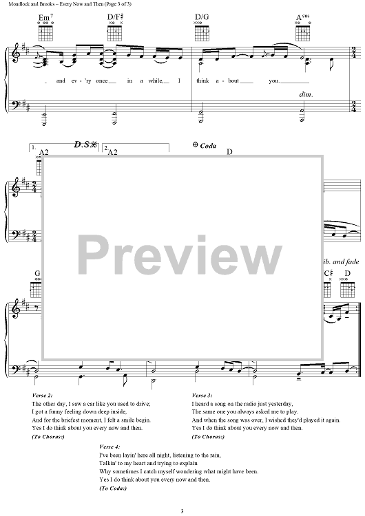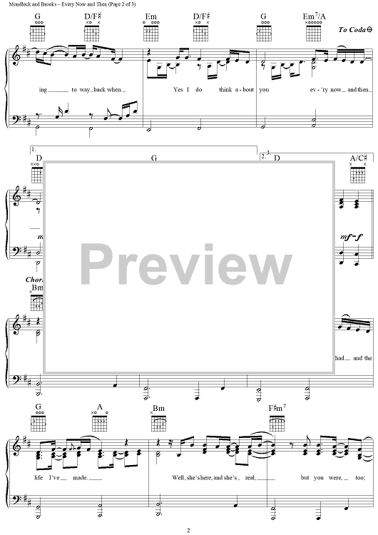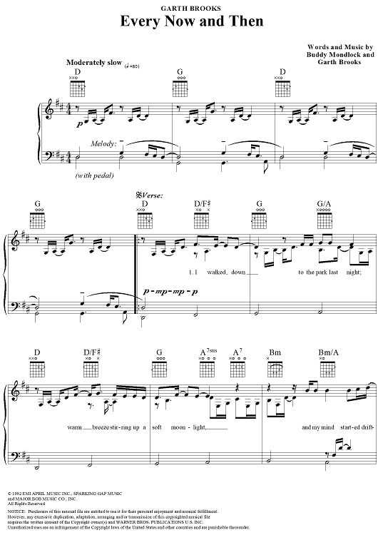 Digital Sheet Music for Every Now and Then by Garth Brooks, Buddy Mondlock scored for Piano/Vocal/Chords; id:109531
