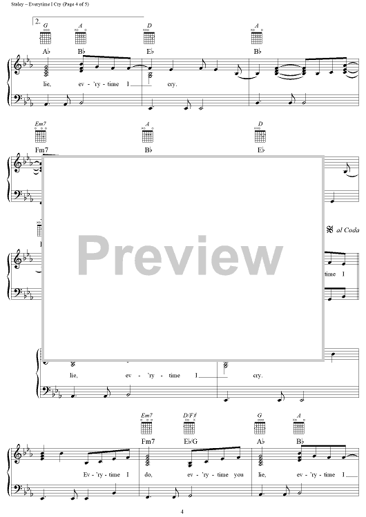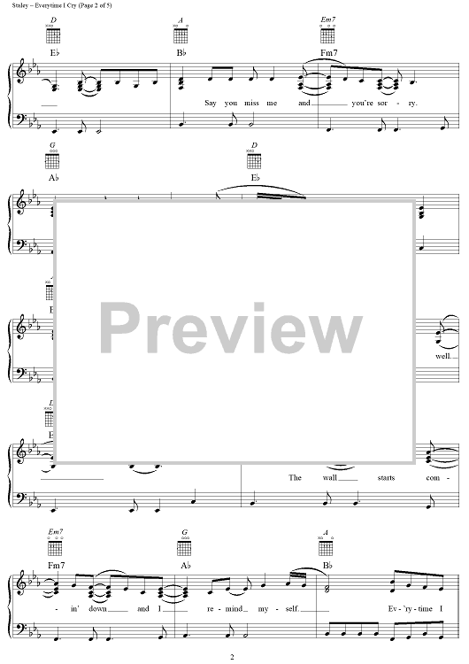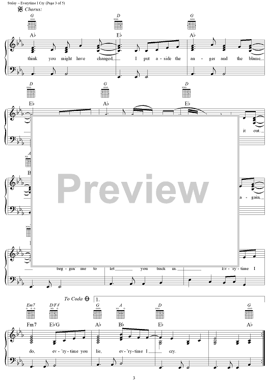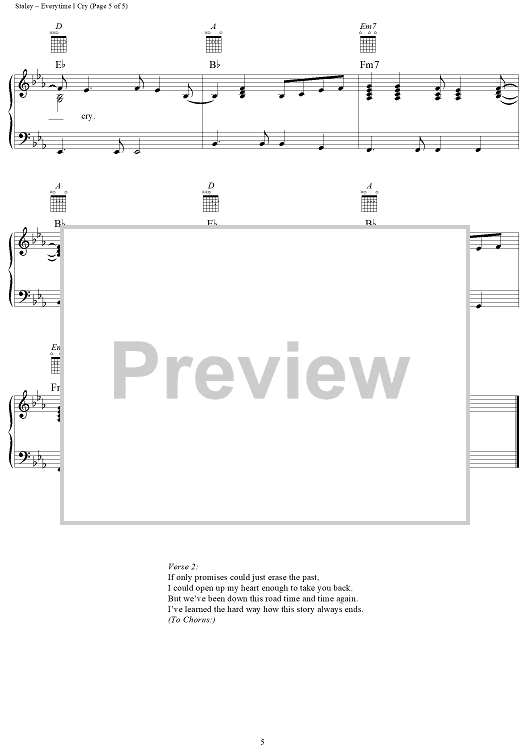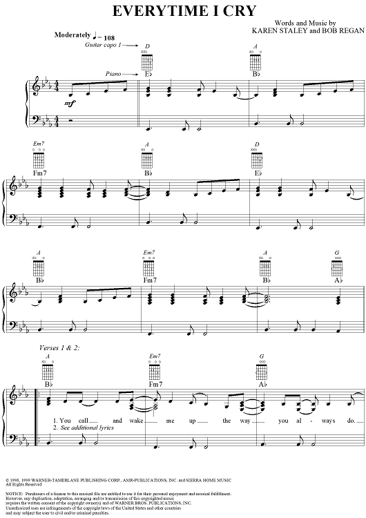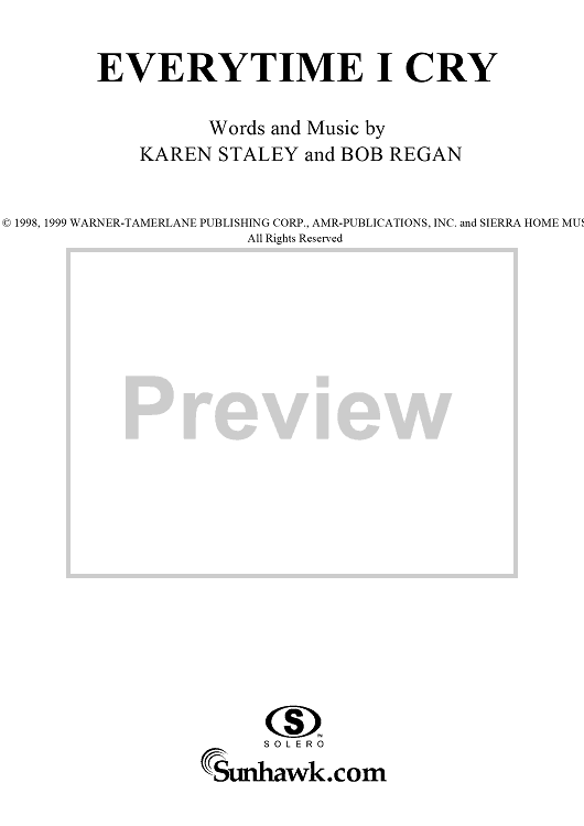 Digital Sheet Music for Everytime I Cry by Bob Regan, Karen Staley, Terri Clark scored for Piano/Vocal/Chords; id:114022