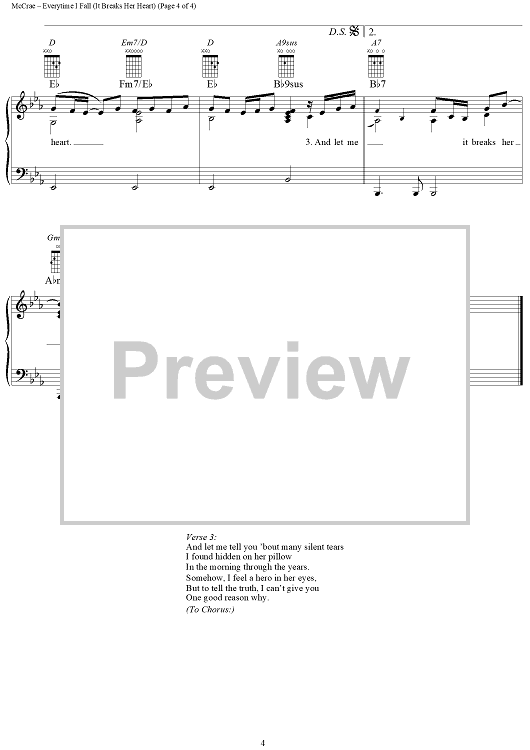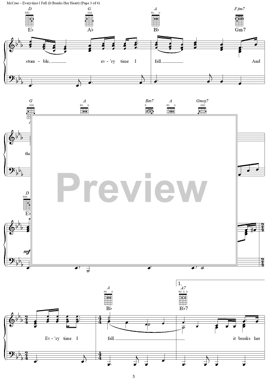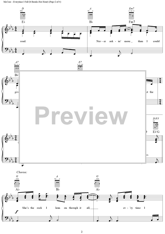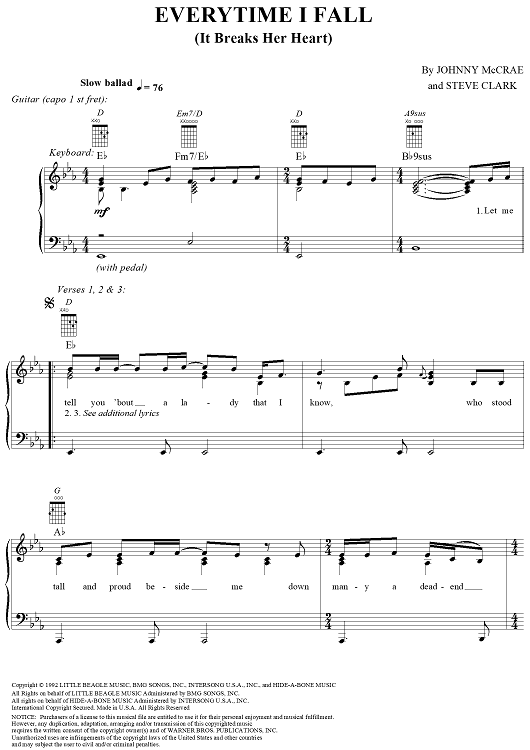 Digital Sheet Music for Everytime I Fall (It Breaks Her Heart) by John Michael Montgomery, Steve Clark, Johnny McCrae scored for Piano/Vocal/Chords; id:251736