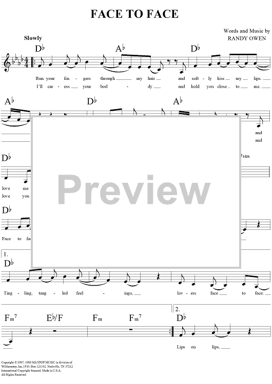 Digital Sheet Music for Face to Face by Randy Owen, Alabama scored for Lead Sheet; id:253824