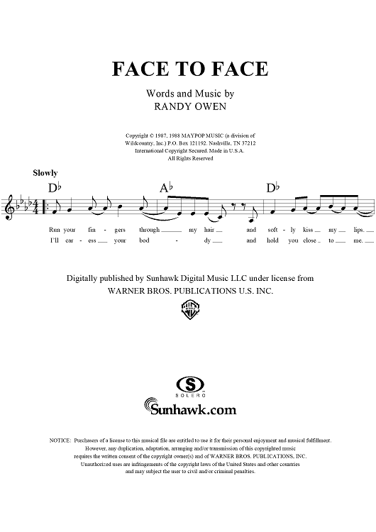 "Face to Face" Sheet Music by Alabama