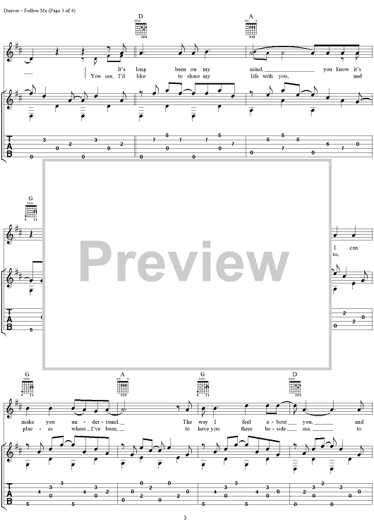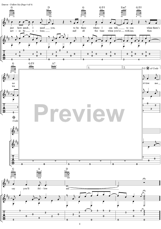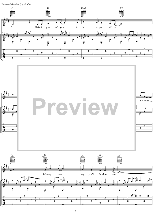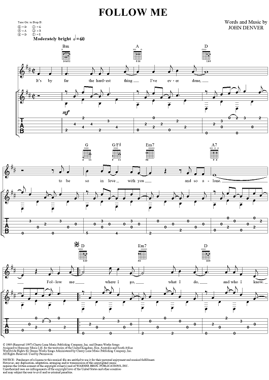 Digital Sheet Music for Follow Me by John Denver scored for Guitar Tab/Vocal; id:287728