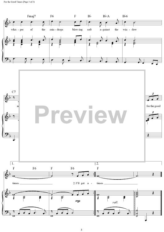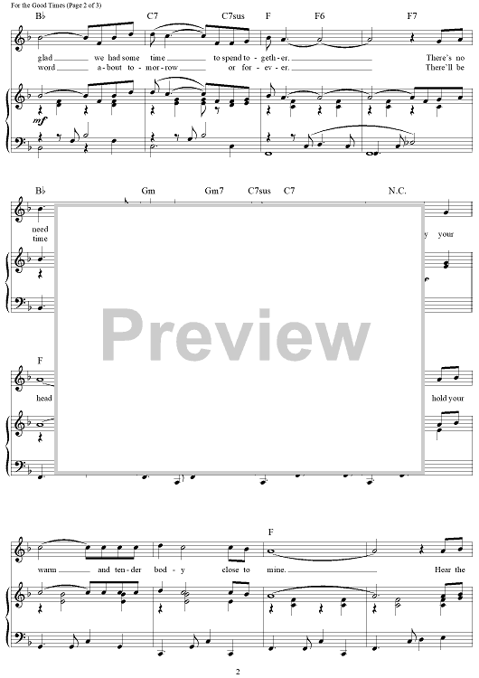 Digital Sheet Music for For the Good Times by Kris Kristofferson scored for Piano/Vocal/Chords; id:321262