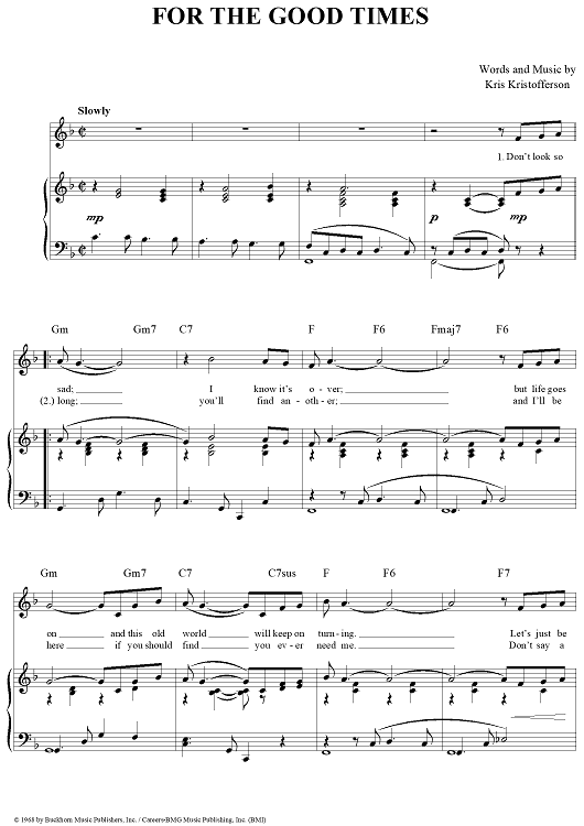 "For the Good Times" Sheet Music by Kris Kristofferson