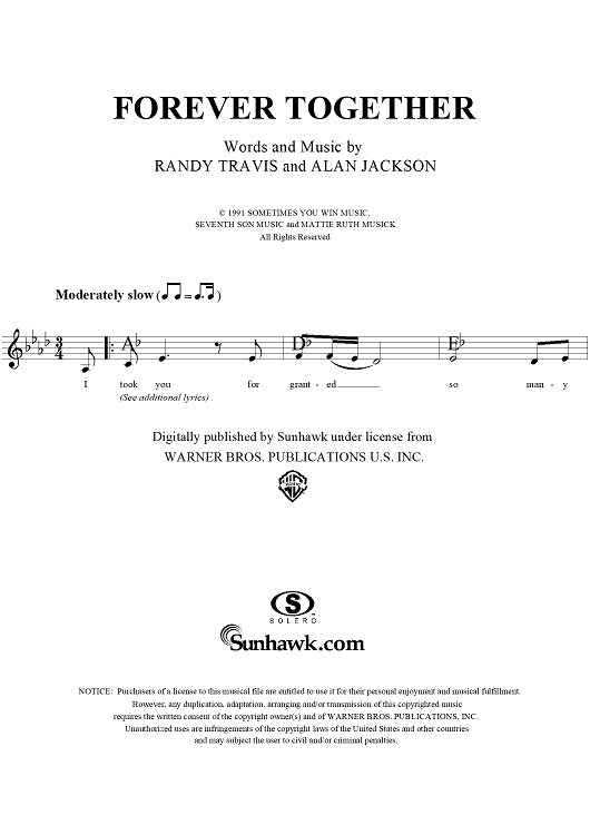 Digital Sheet Music for Forever Together by Randy Travis, Al Jackson Jr scored for Lead Sheet; id:260940