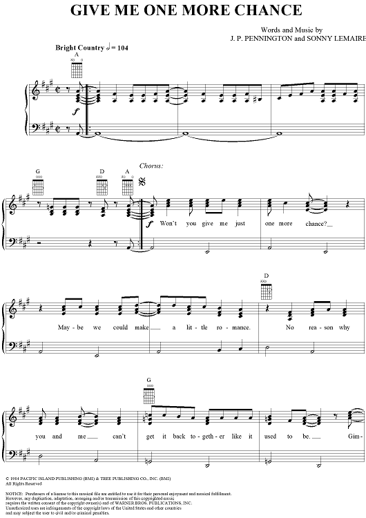 Digital Sheet Music for Give Me One More Chance by Exile, James P. Pennington, Sonny LeMaire scored for Piano/Vocal/Chords; id:254445