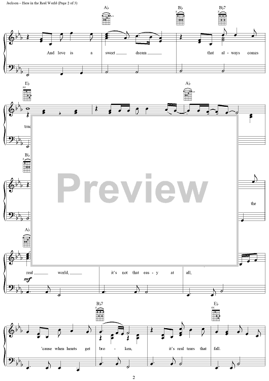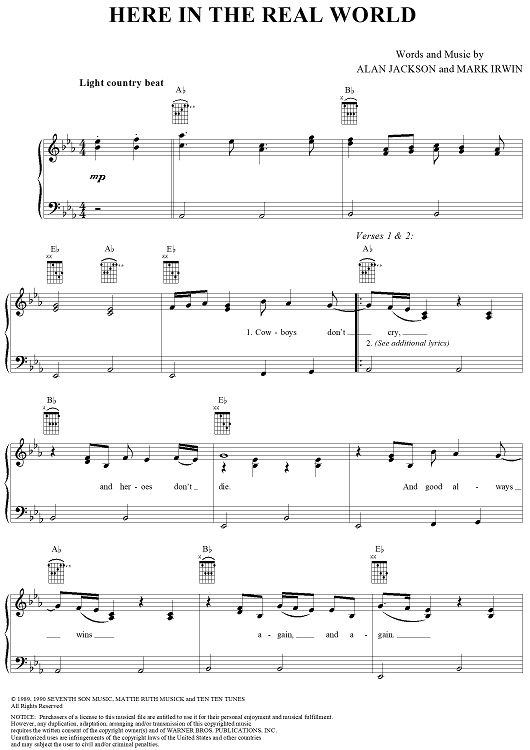Digital Sheet Music for Here In The Real World by Mark Irwin, Al Jackson Jr scored for Easy Piano/Vocal; id:265639