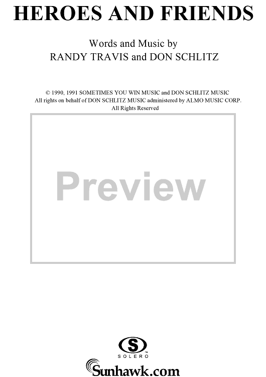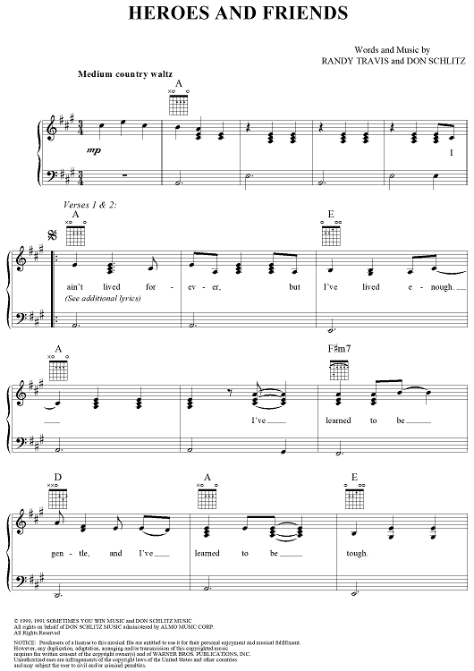Digital Sheet Music for Heroes and Friends by Randy Travis, Don Schlitz scored for Easy Piano/Vocal; id:116015