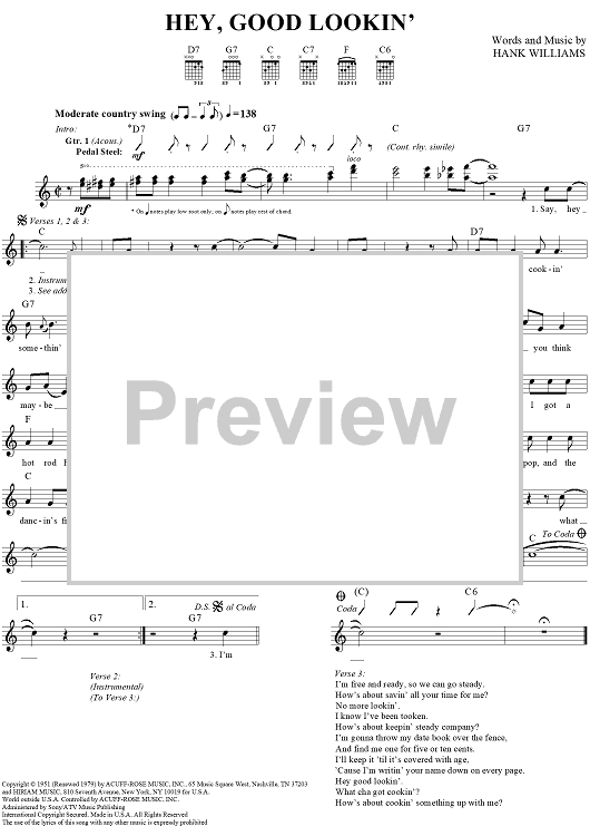 "Hey, Good Lookin'" Sheet Music by Hank Williams