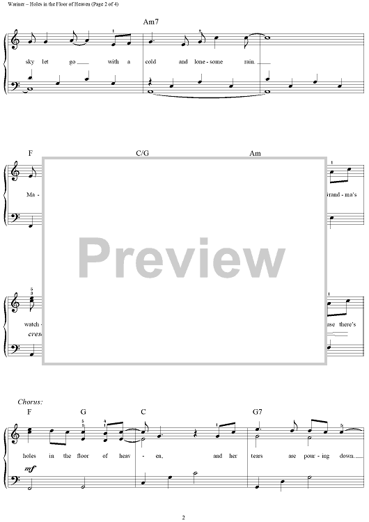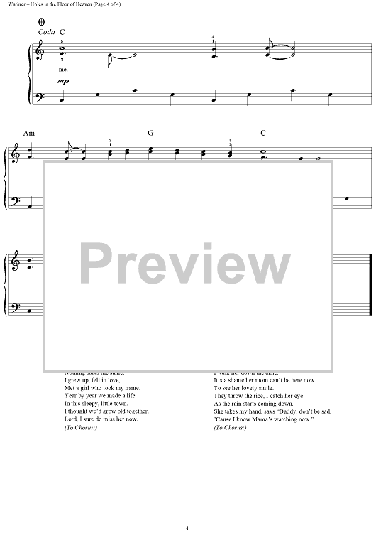 Digital Sheet Music for Holes In The Floor Of Heaven by Dan Coates, Steve Wariner, Billy Kirsch scored for Easy Piano/Vocal; id:120633