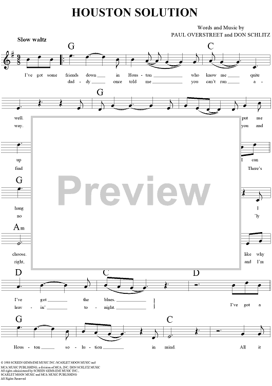 Digital Sheet Music for Houston Solution by Don Schlitz, Ronnie Milsap, Paul Overstreet scored for Lead Sheet; id:253793