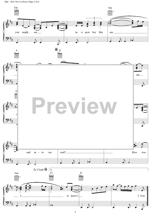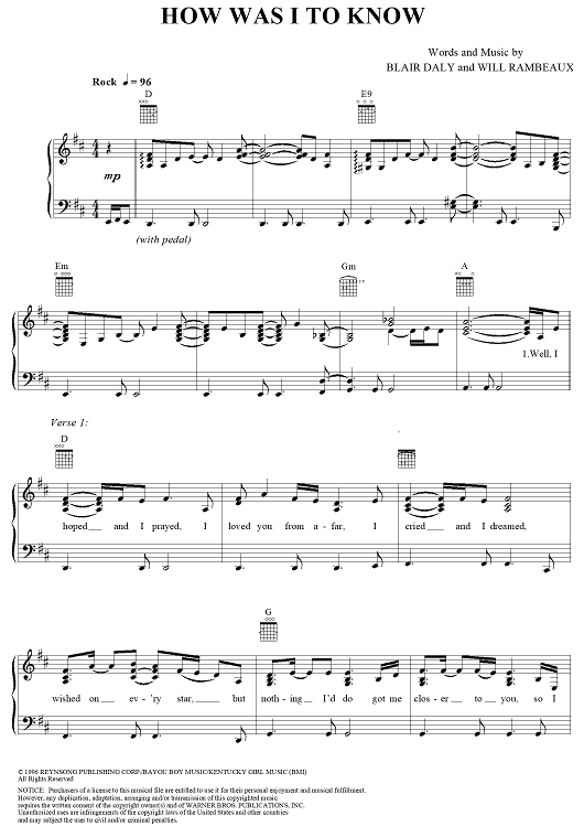 Digital Sheet Music for How Was I to Know by John Michael Montgomery, Blair Daly, Will Rambeaux scored for Piano/Vocal/Chords; id:271922
