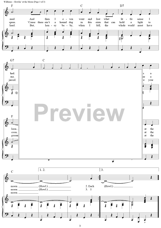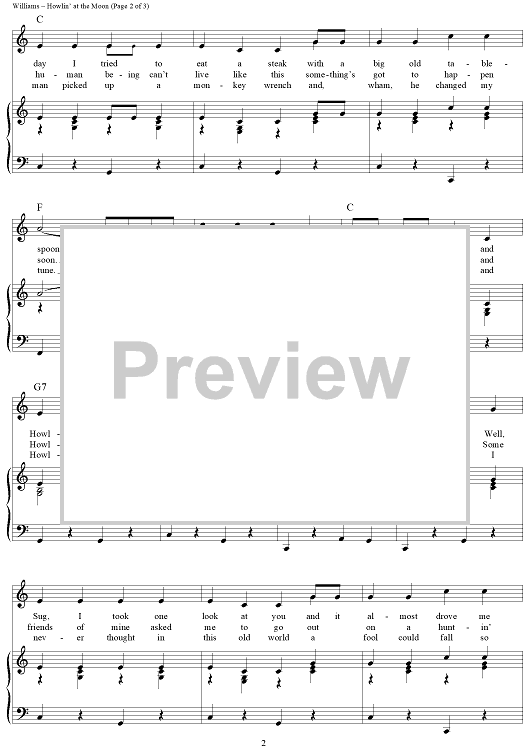 Digital Sheet Music for Howlin' at the Moon by Hank Williams scored for Piano/Vocal/Chords; id:264009
