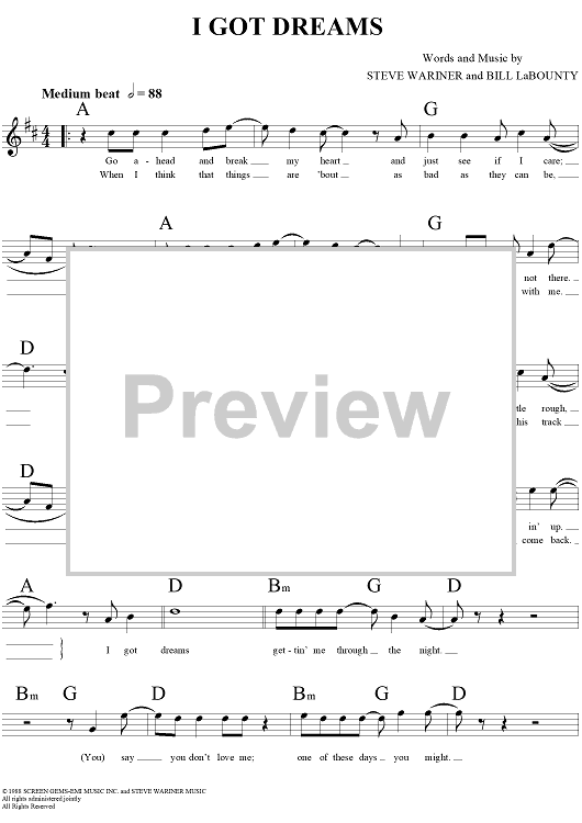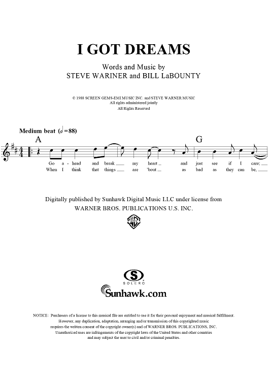 Digital Sheet Music for I Got Dreams by Steve Wariner, Bill LaBounty scored for Lead Sheet; id:264677