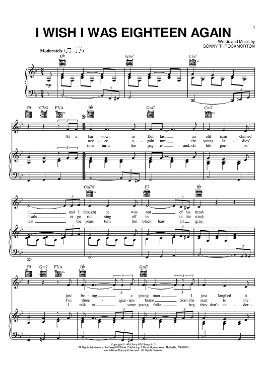 Digital Sheet Music for I Wish I Was Eighteen Again by Sonny Throckmorton, George Burns scored for Piano/Vocal/Chords; id:386508
