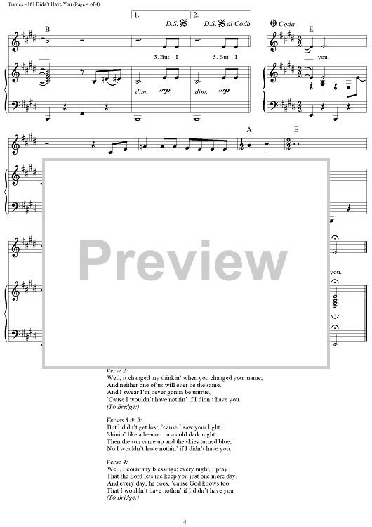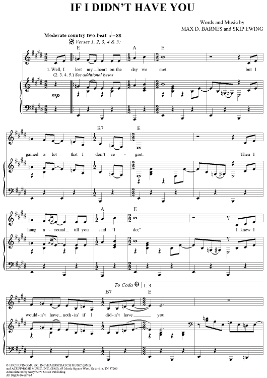 Digital Sheet Music for If I Didn't Have You by Randy Travis, Skip Ewing, Max D. Barnes scored for Piano/Vocal/Chords; id:361933