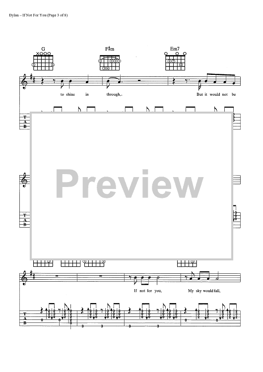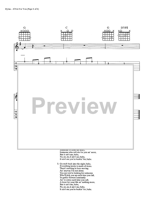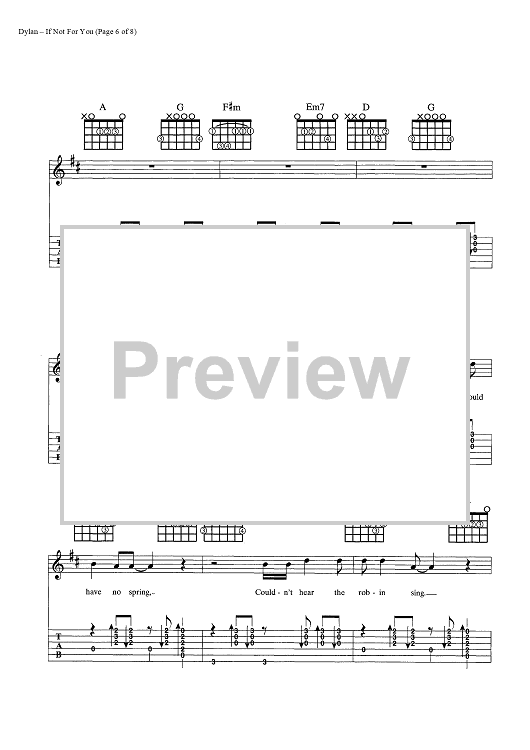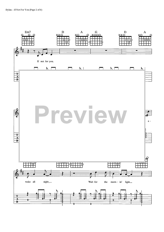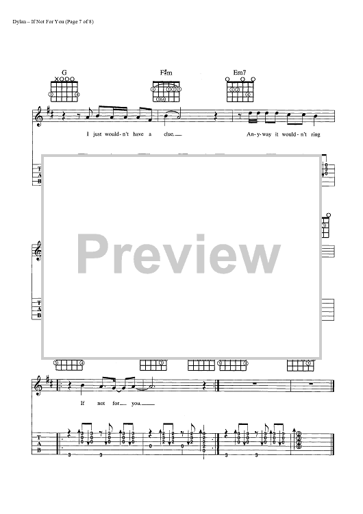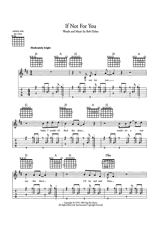 Digital Sheet Music for If Not For You by Bob Dylan scored for Guitar Tab/Vocal/Chords; id:445386