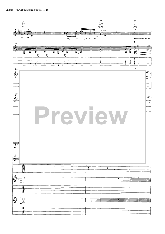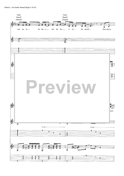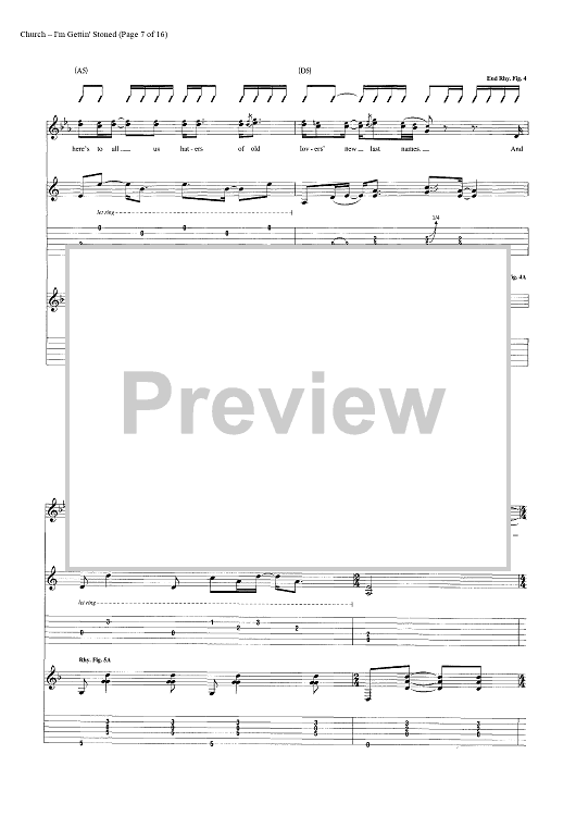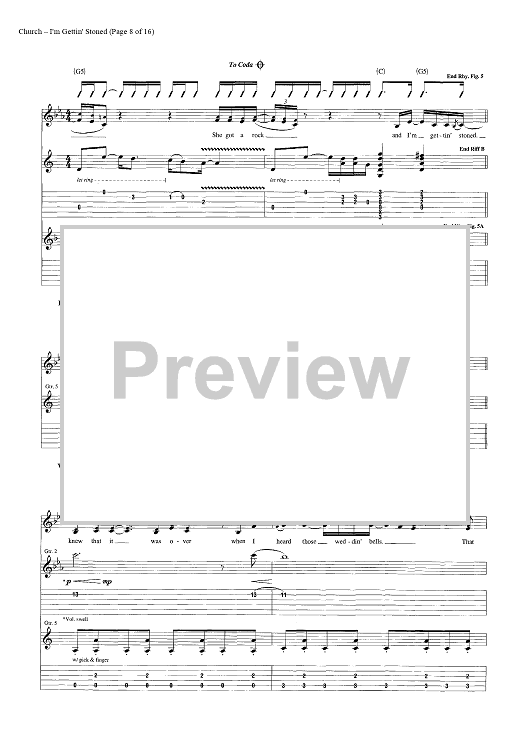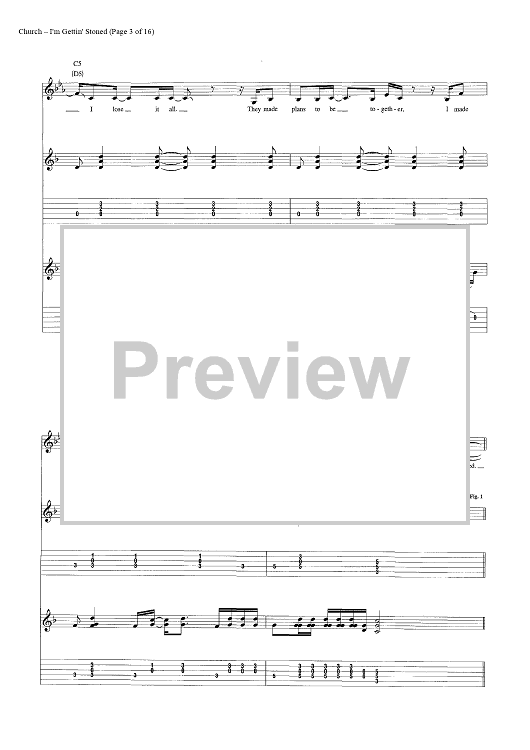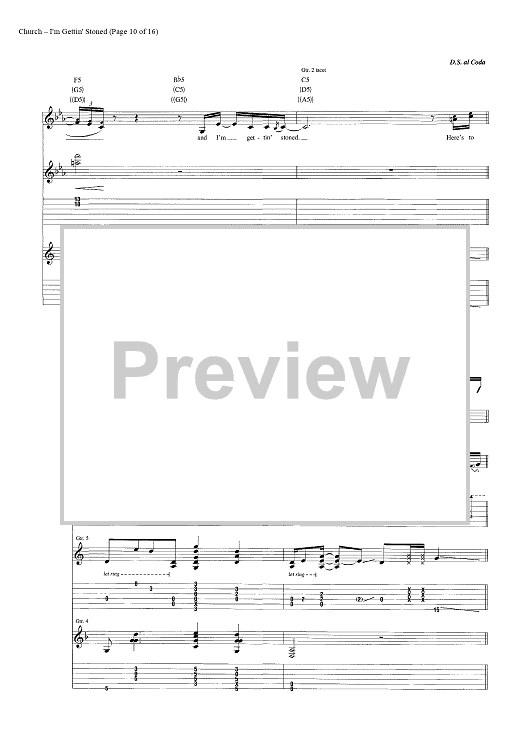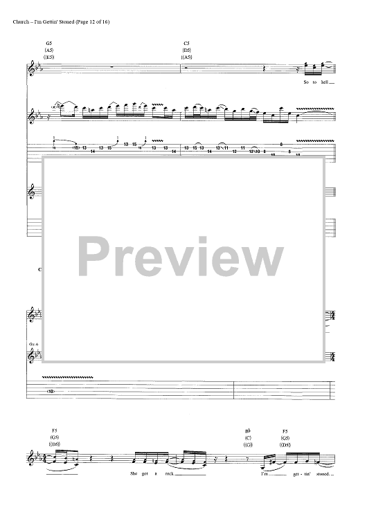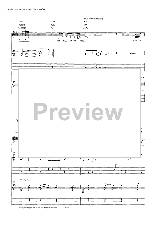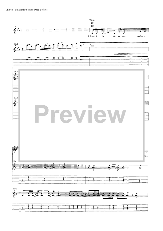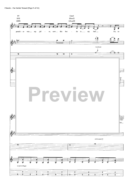 Digital Sheet Music for I'm Gettin' Stoned by Casey Beathard, Eric Church, Jeffery Hyde, Jeremy Crady scored for Guitar Tab/Vocal/Chords; id:446968