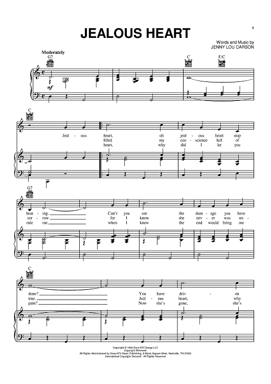 Digital Sheet Music for Jealous Heart by Jenny Lou Carson, Tex Ritter scored for Piano/Vocal/Chords; id:383493