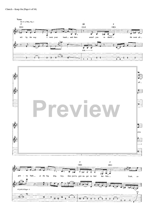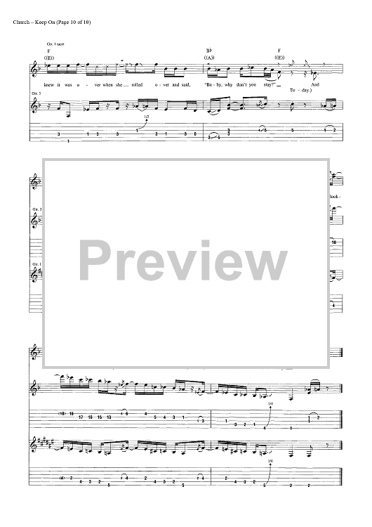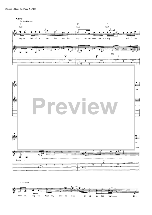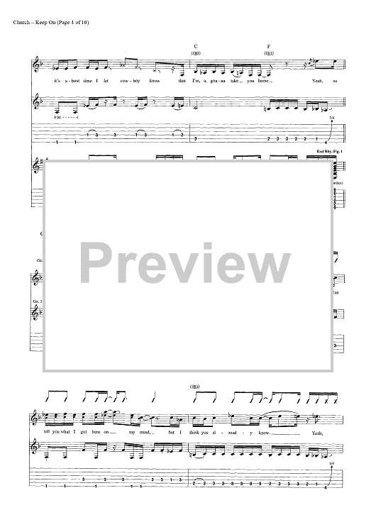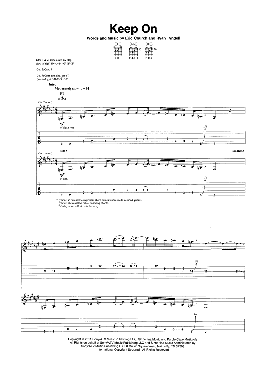 Digital Sheet Music for Keep On by Eric Church, Ryan Tyndell scored for Guitar Tab/Vocal/Chords; id:446942