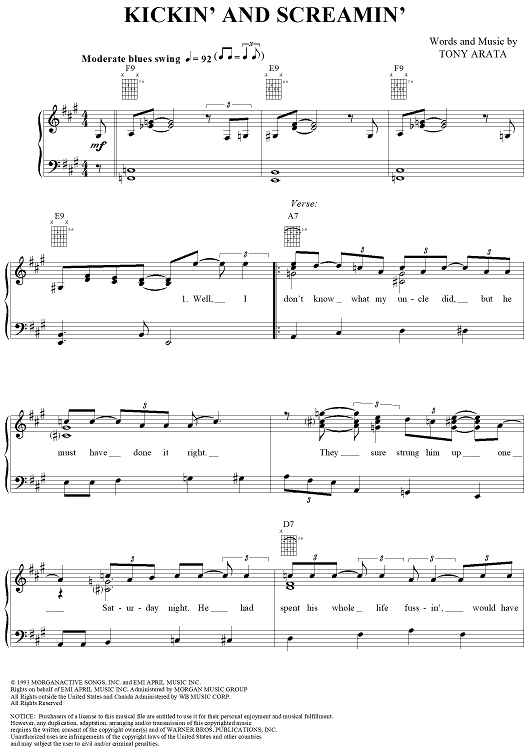 Digital Sheet Music for Kickin' and Screamin' by Garth Brooks, Tony Arata scored for Piano/Vocal/Chords; id:276947
