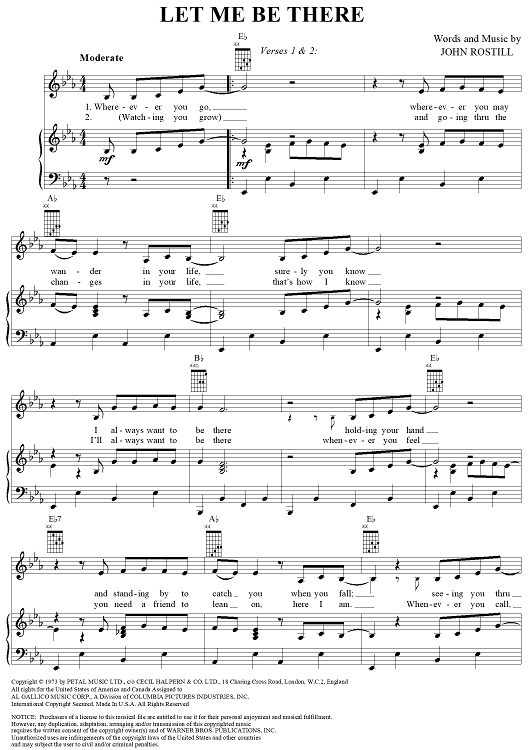 Digital Sheet Music for Let Me Be There by Olivia Newton-John, John Rostill scored for Piano/Vocal/Chords; id:254935