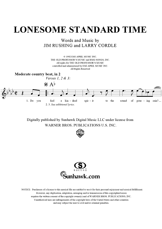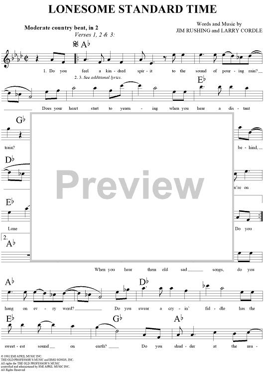 Digital Sheet Music for Lonesome Standard Time by Larry Cordle, Kathy Mattea, Jim Rushing scored for Lead Sheet; id:256246