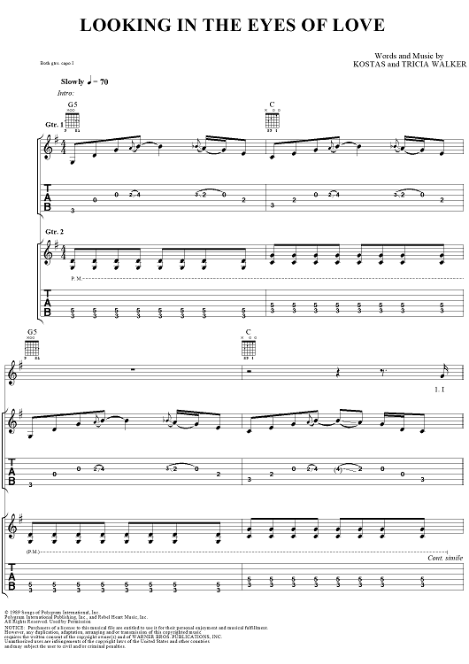 Digital Sheet Music for Looking in the Eyes of Love by Kostas Walker, Tricia Walker, Alison Krauss & Union Station scored for Guitar Tab/Vocal; id:264911