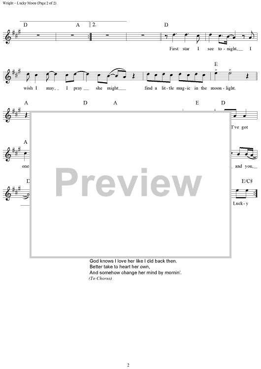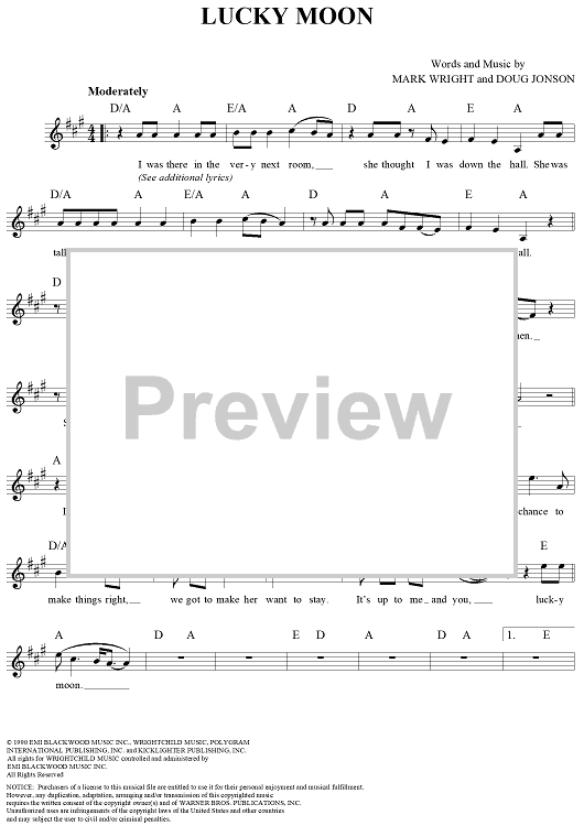 Digital Sheet Music for Lucky Moon by Mark Wright, Doug Johnson, The Oak Ridge Boys scored for Lead Sheet; id:113085