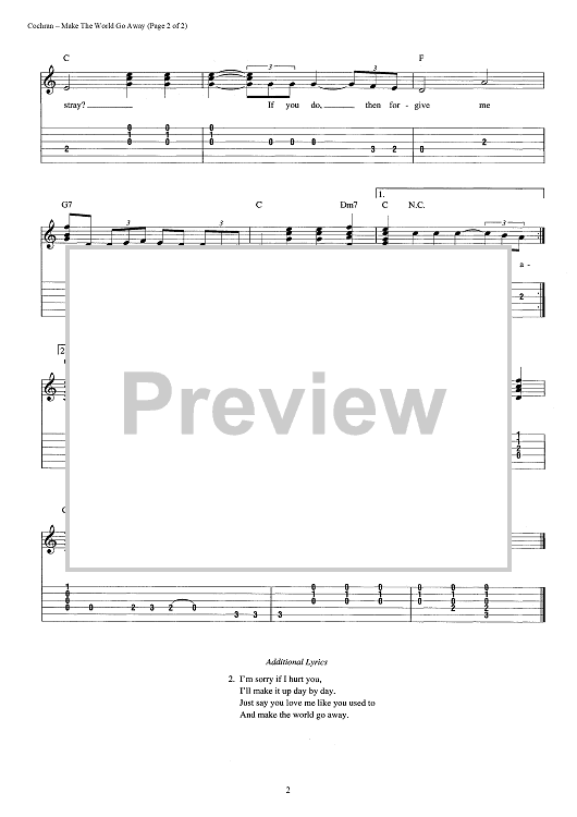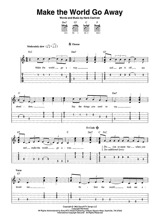 Digital Sheet Music for Make The World Go Away by Elvis Presley, Eddy Arnold, Ray Price, Hank Cochran scored for Easy Guitar Tab/Vocal; id:393018