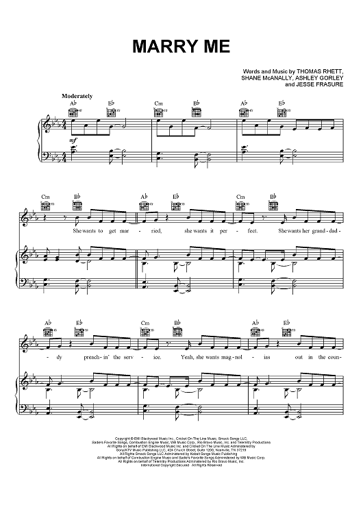 Digital Sheet Music for Marry Me by Shane McAnally, Ashley Gorley, Thomas Rhett, Jesse Frasure scored for Piano/Vocal/Chords; id:466256