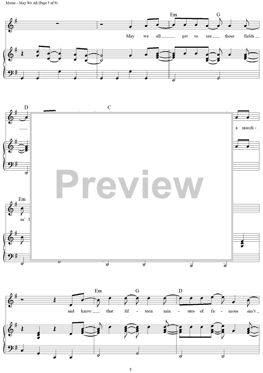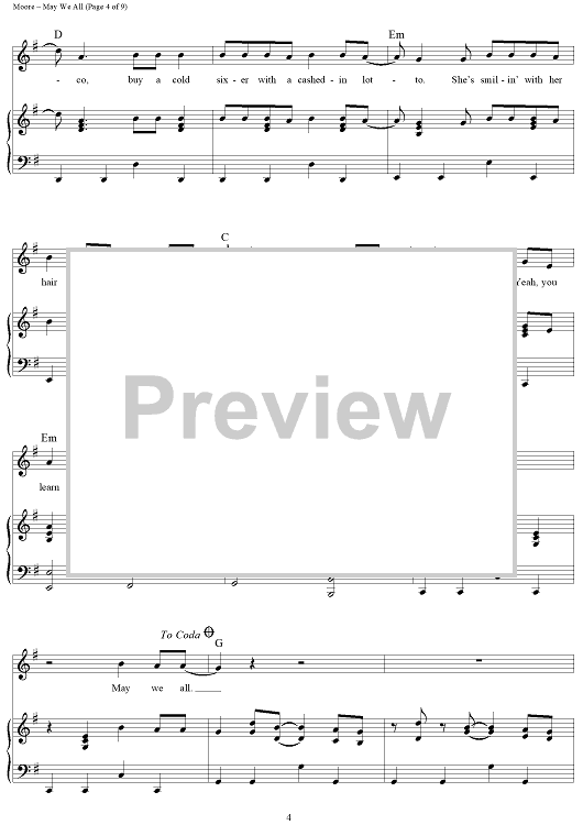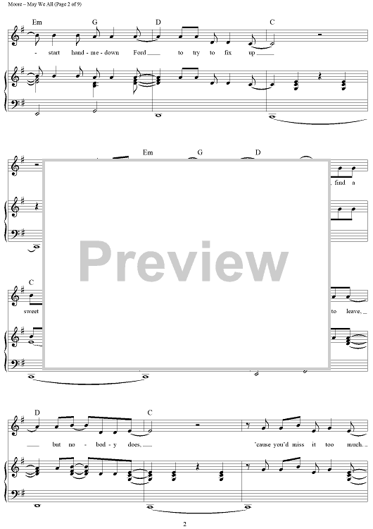 Digital Sheet Music for May We All by Rodney Clawson, Jamie Moore, Florida Georgia Line scored for Piano/Vocal/Chords; id:461900