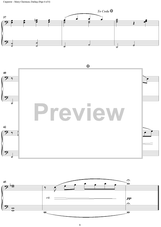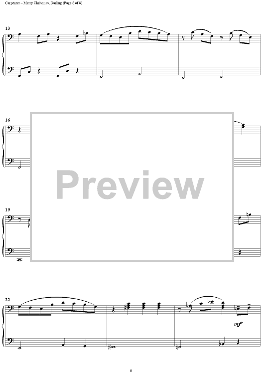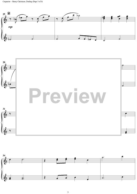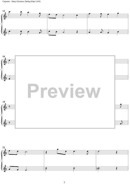 "Merry Christmas, Darling" Sheet Music by The Carpenters